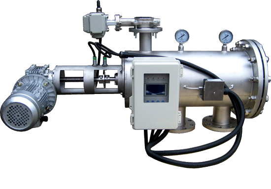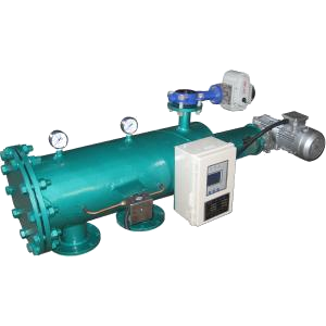 Первоначально исходная вода поступает в фильтр грубой очистки, затем в фильтр тонкой очистки. Примеси накапливаются на внутренней стенке. Когда перепад давления между входом и выхода воды достигает предварительно заданное значение, то запускается режим автоматической промывки. Двигатель приводит шток во вращение скруббер, который соскребает и засасывает грязь из внутренней поверхности сетки. Примеси отводятся в дренажный канал. В процессе промывки фильтрация воды не прекращается. Система управления оборудована контроллером с