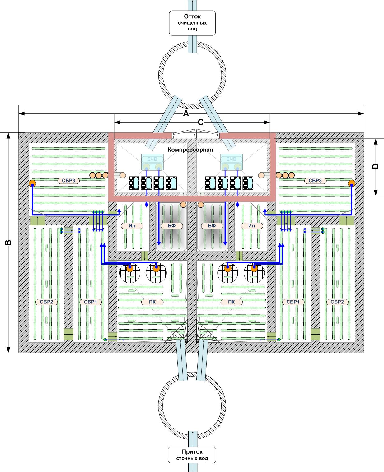 Двумодульные установки BIOTAL железобетонного исполнения состоят из двух одномодульных установок.