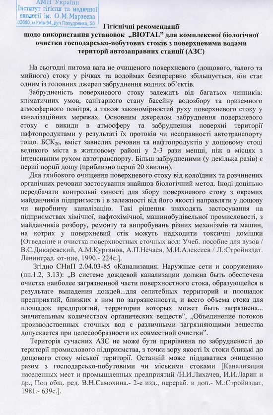 Система "BIOTAL-AUTO" комплексной очистки сточных вод (хозяйственно-бытовых, дождевых) автозаправочной станции производительностью менее 25 м3/сутки