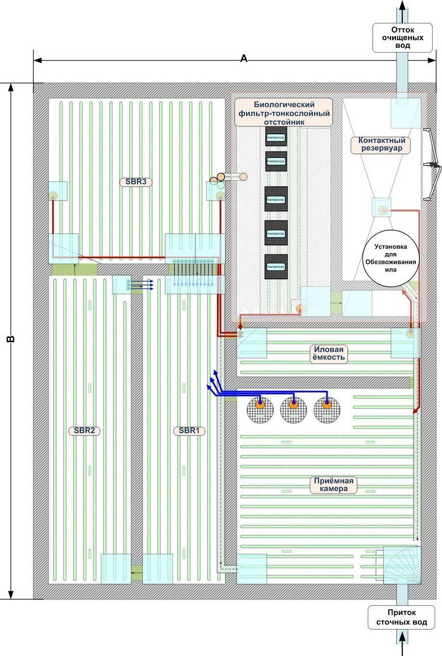 Оборудование биореакторов монтируется в емкостях, изготовленных из специального железобетона для гидротехнических сооружений, расположенных ниже уровня земли или полузаглубленных с обваловкой. Биореакторы перекрываются монолитом или железобетонными плитами, проводится гидро- и теплоизоляция с последующей обсыпкой грунтом.