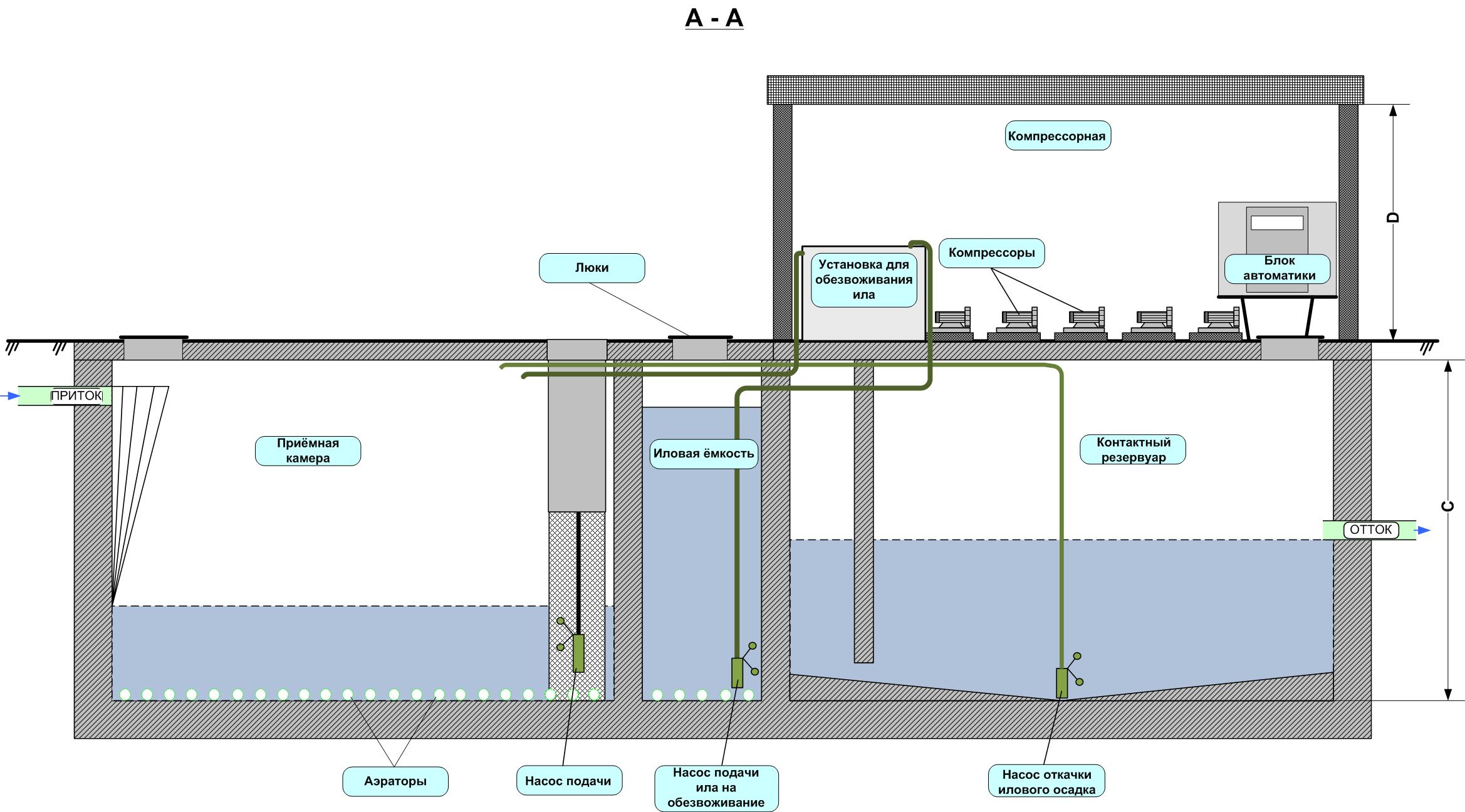 Оборудование установок производительностью от 10 до 30 м3/сутки может монтироваться в железобетонных колодцах промышленного изготовления.
